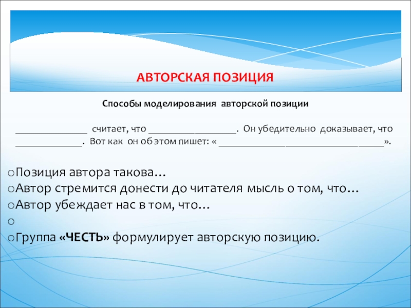 Слайд 31АВТОРСКАЯ ПОЗИЦИЯ