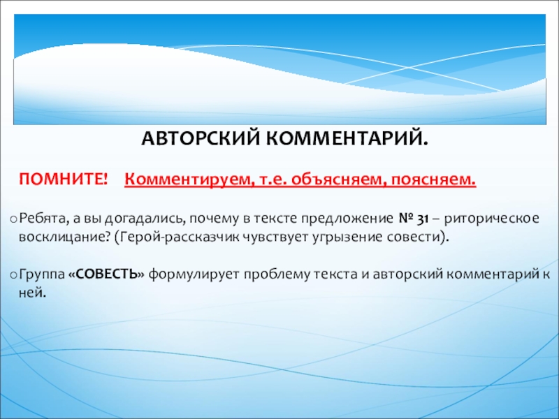 Слайд 27АВТОРСКИЙ КОММЕНТАРИЙ.