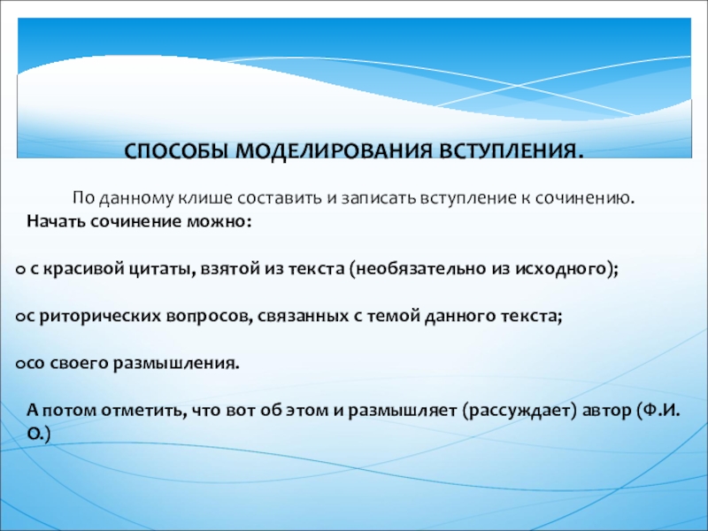 1 приём. Я полностью разделяю взгляды ________________. Действительно, _________________________________________________________________________. Доказательством этой мысли служит тот факт, что _____________________________. Подобные примеры часто встречаются не только в жизни, но и в литературе. Не так давно я прочитал (-а) книгу _______________________, где говорится о ___________________.