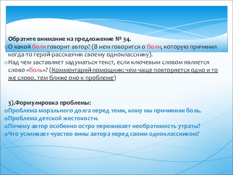 учить ребят находить и формулировать проблему текста, комментарий, авторскую