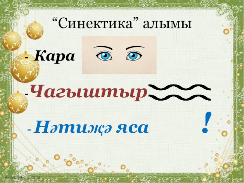 “Синектика” алымы- Кара-Чагыштыр - Нәтиҗә яса     !
