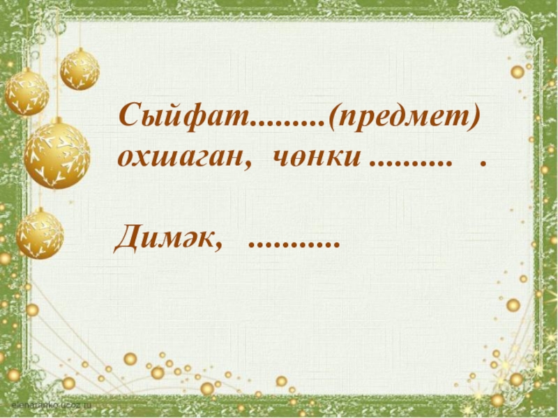 Слайд 8Сыйфат.........(предмет) охшаган, чөнки .......... .