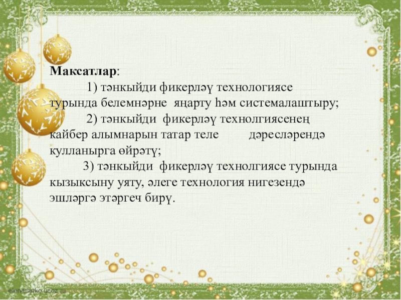 Максатлар:      1) тәнкыйди фикерләү технологиясе турында белемнәрне