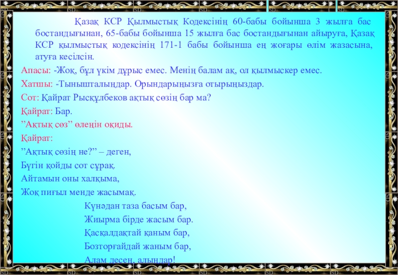 Слайд 19 Қазақ КСР Қылмыстық Кодексінің 60-бабы бойынша