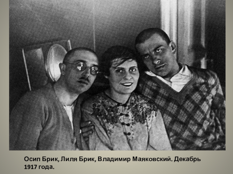 Слайд 10Осип Брик, Лиля Брик, Владимир Маяковский. Декабрь 1917 года.