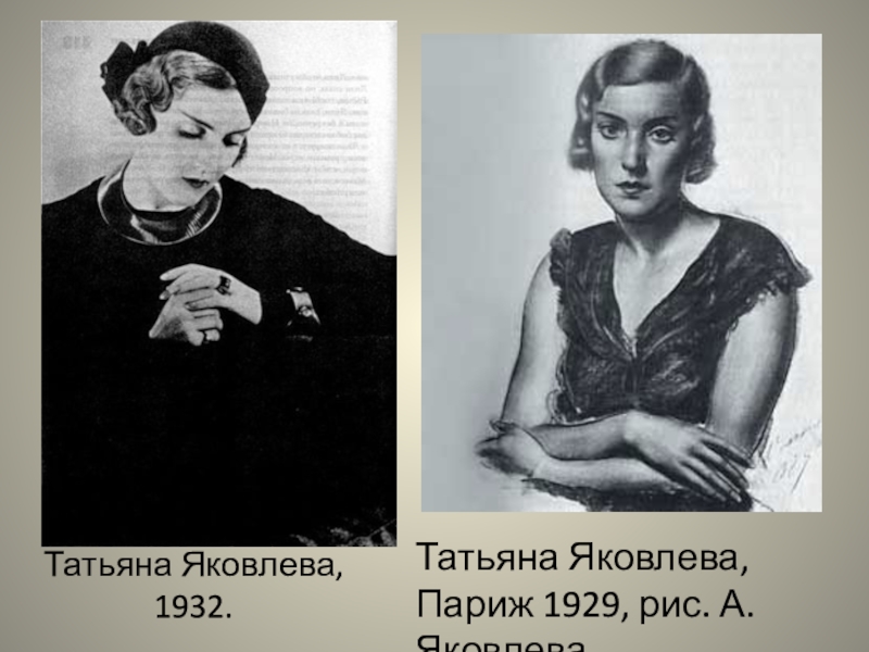 Татьяна Яковлева, 1932.Татьяна Яковлева, Париж 1929, рис. А. Яковлева