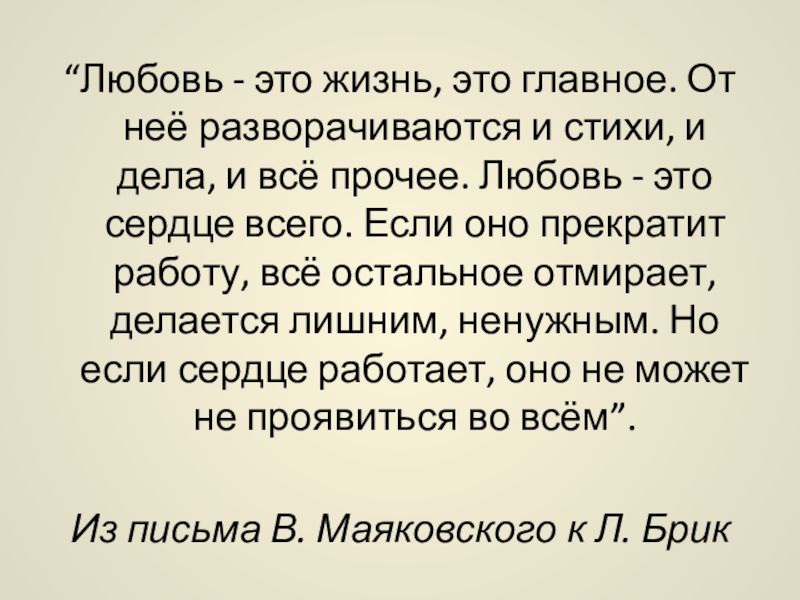 Презентация, доклад Маяковский. Любовь - это жизнь, это главное (11 класс)