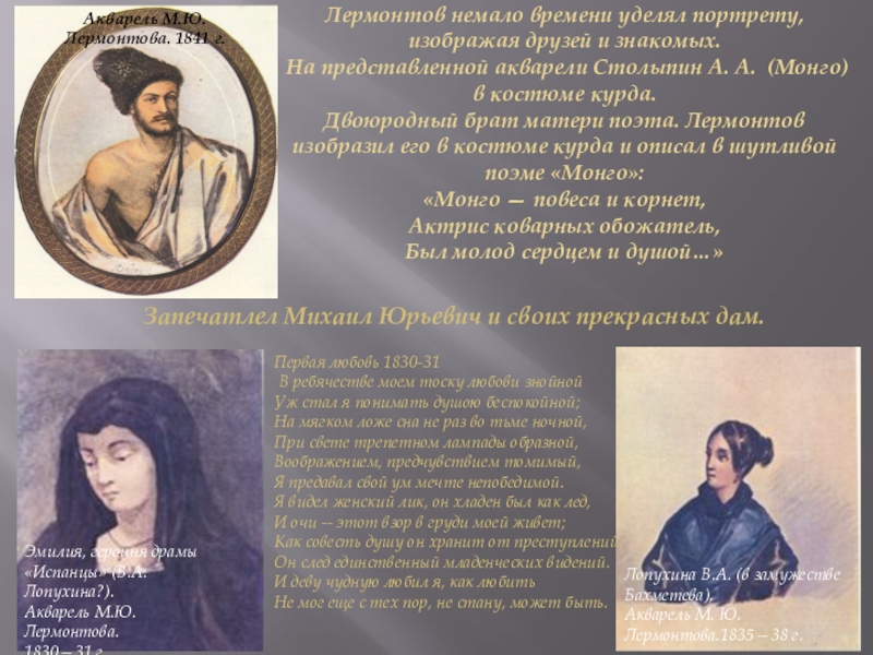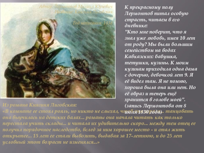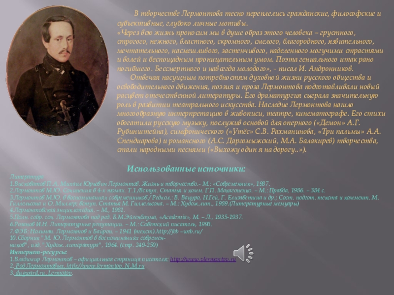 В творчестве Лермонтова тесно переплелись гражданские, философские и субъективные, глубоко личные мотивы.