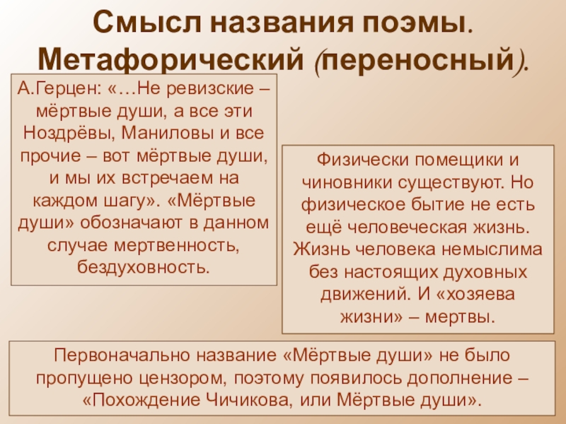 А.Герцен: «…Не ревизские – мёртвые души, а