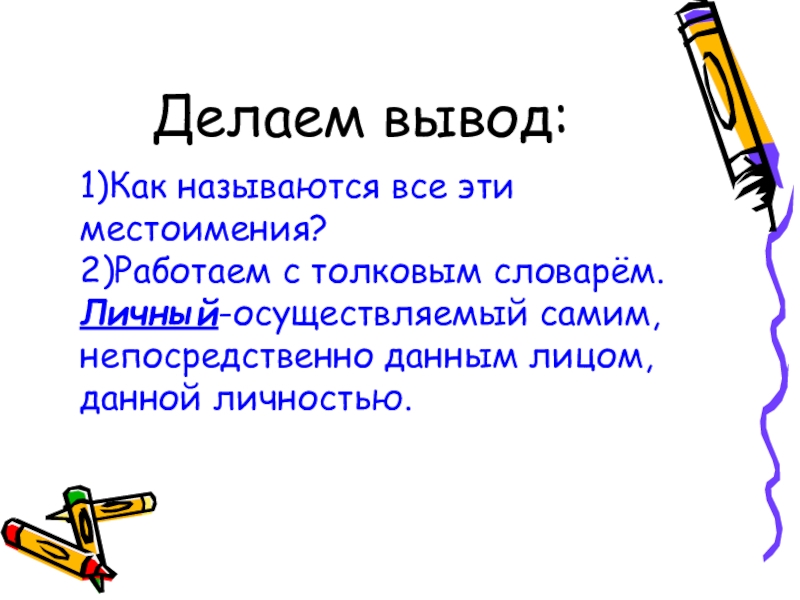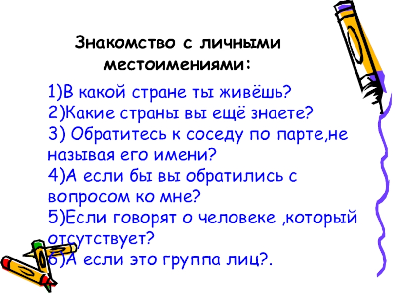 Познакомить с особенностями местоимений 1, 2, 3-го лица.