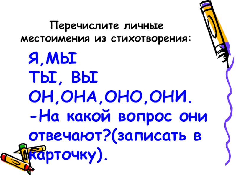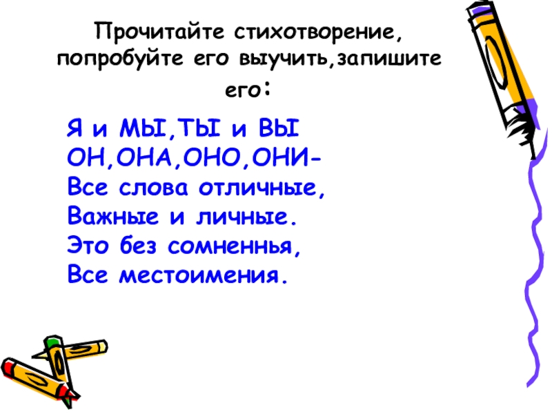 Слайд 30Перечислите личные местоимения из стихотворения: