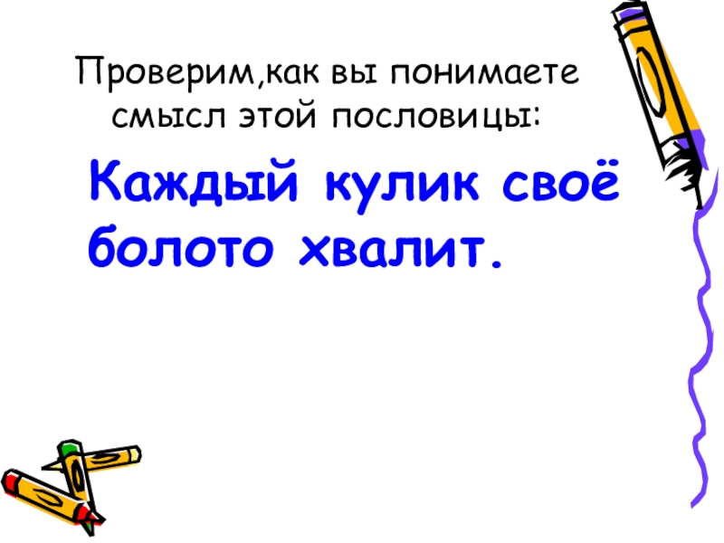 Слайд 14Проверим,как вы понимаете смысл этой пословицы: