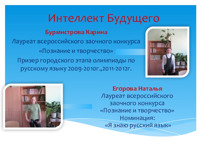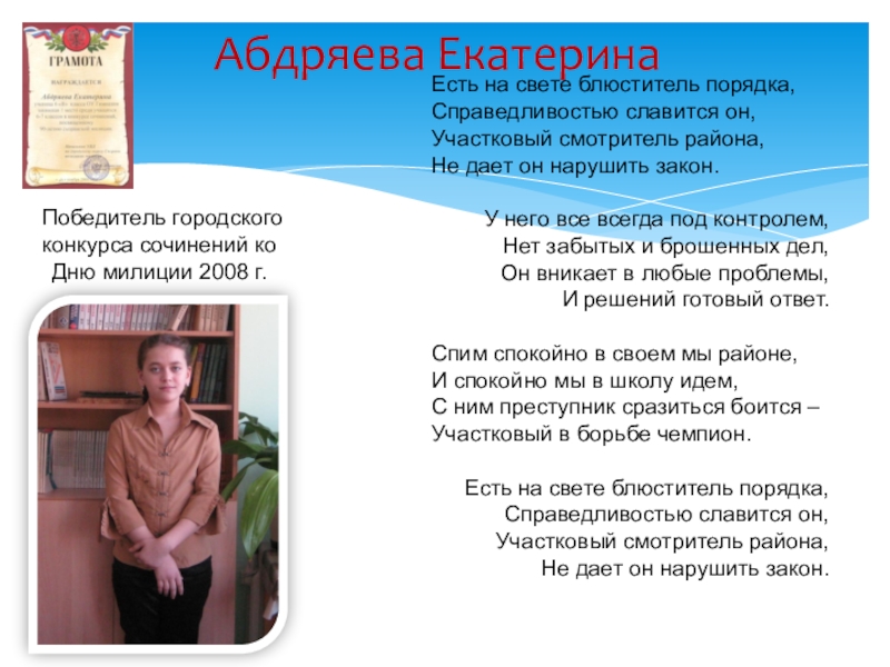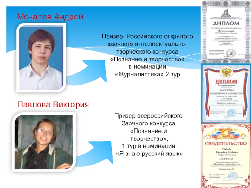 Призер областной олимпиады по русскому языку (2007 год) и литературе в 2008 году