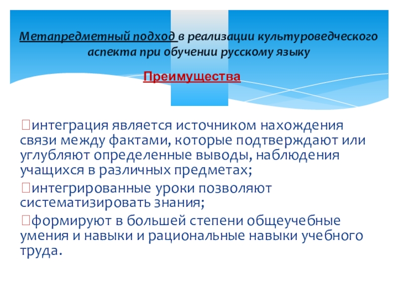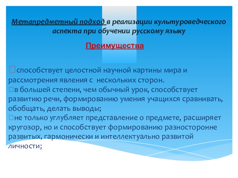 Метапредметный подход в реализации культуроведческого аспекта при обучении русскому языку