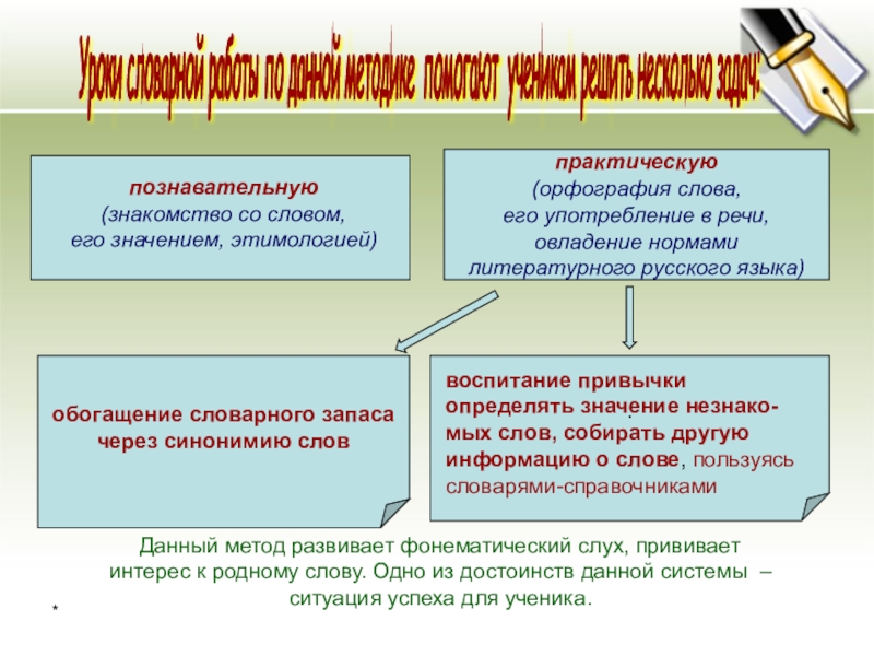 Уроки словарной работы по данной методике помогают ученикам решить несколько задач: