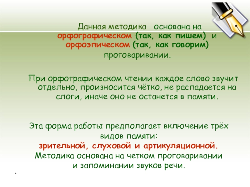 Данный метод развивает фонематический слух, прививает интерес к родному слову. Одно из достоинств данной системы – ситуация успеха для ученика.