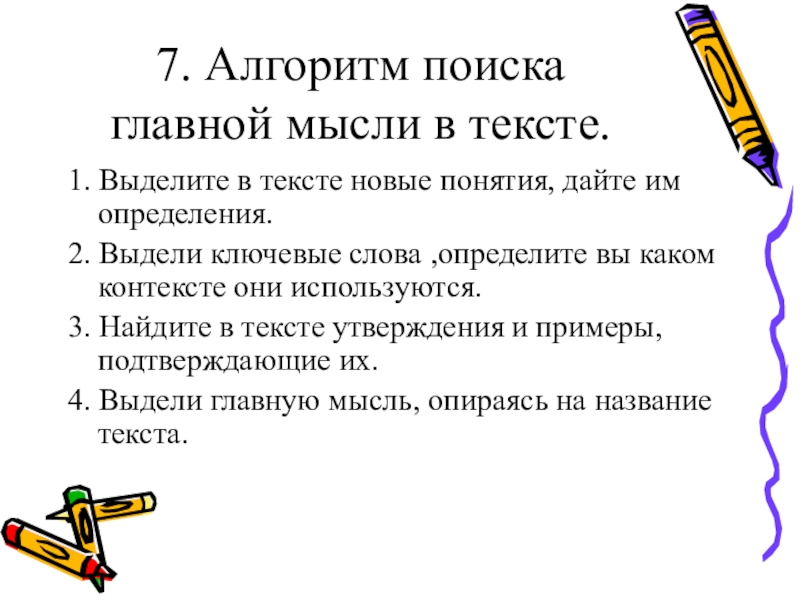 Слайд 87. Алгоритм поиска главной мысли в тексте.