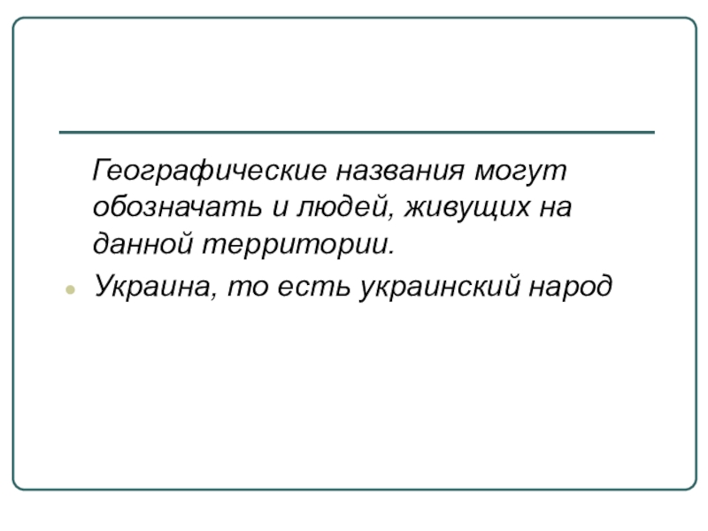 Слайд 6 Географические названия могут обозначать и людей, живущих на данной