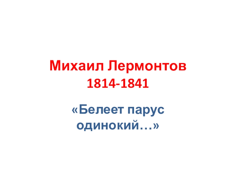 Михаил Лермонтов 1814-1841«Белеет парус одинокий…»
