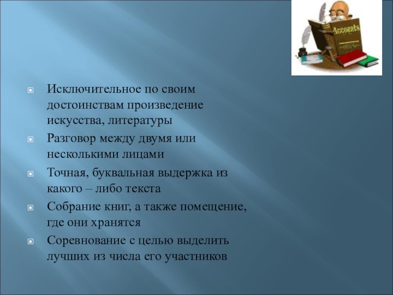 Это сайт презентаций, где можно хранить и обмениваться своими презентациями, докладами, проектами, шаблонами в формате PowerPoint с другими пользователями. Мы помогаем школьникам, студентам, учителям, преподавателям хранить и обмениваться учебными материалами.