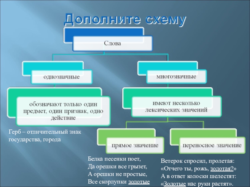 Прочитай толкование лексического значения слов, соотнеси и запиши их