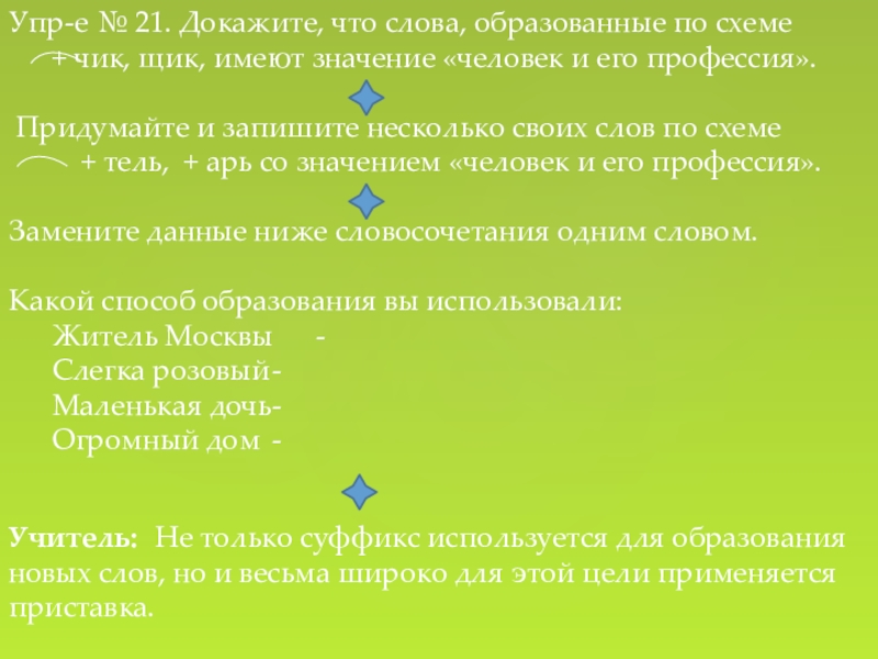 Слайд 15Упр-е № 21. Докажите, что слова, образованные по схеме