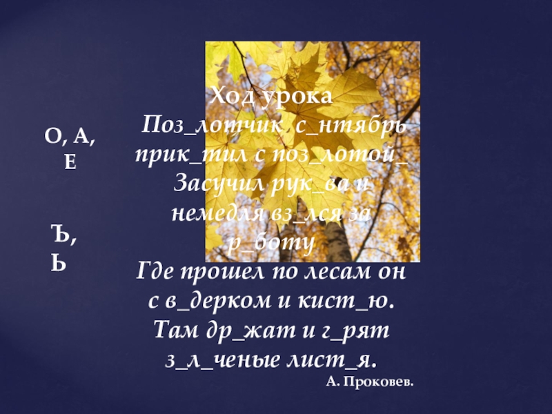 Там др_жат и г_рят з_л_ченые лист_я.