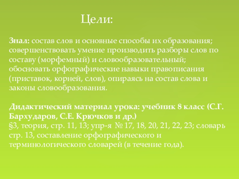 обосновать орфографические навыки правописания (приставок, корней, слов), опираясь на состав слова и законы словообразования.