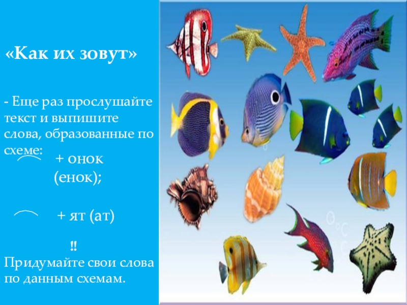 Под водой постоянно встречаешь разных рыбьих ребят. А как их называть – не знаешь. У нас, на земле, просто. У волка – волчонок, у лесы – лесенок, у зайчихи – зайчонок. Лисята , волчата, медвежата, ежата, гусята….