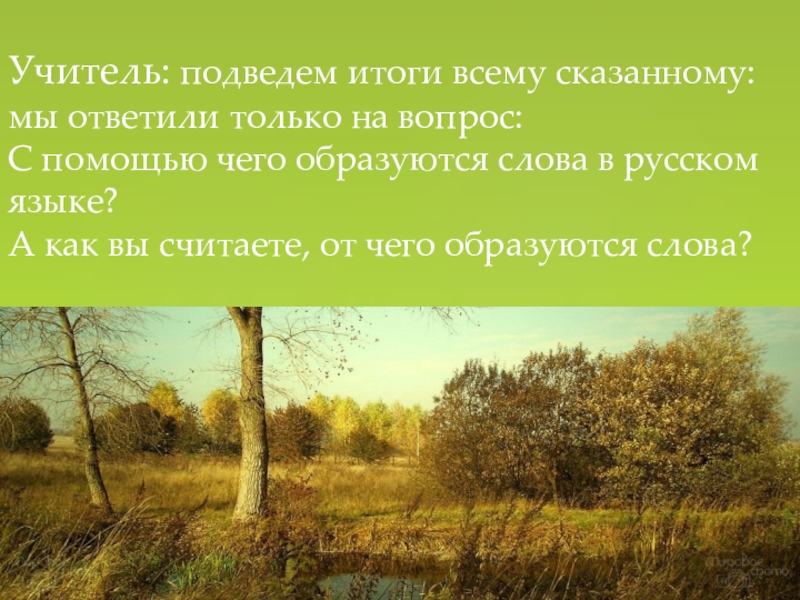 Учитель: Мы много внимания уделили тем значительным частям слова, которые являются словообразующими.