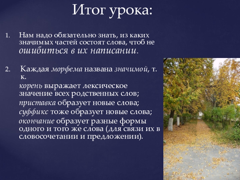 Нам надо обязательно знать, из каких значимых частей состоят слова,
