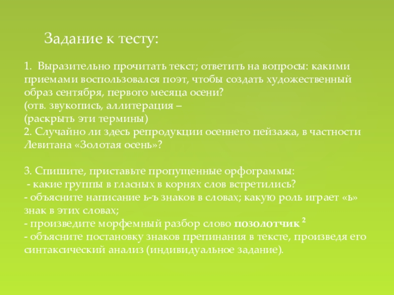 Слайд 5 Задание к тесту: