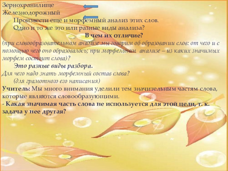 (при словообразовательном анализе мы говорим об образовании слов: от чего и с помощью чего оно образовалось; при морфельном анализе – из каких значимых морфем состоит слова)?