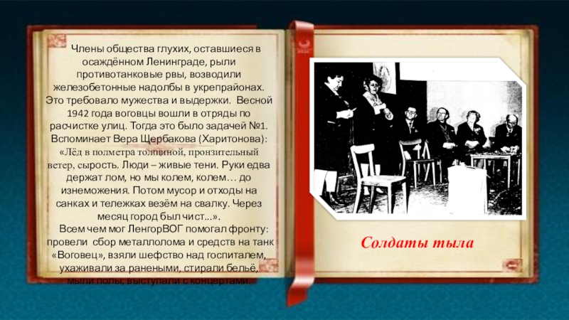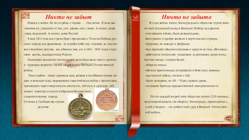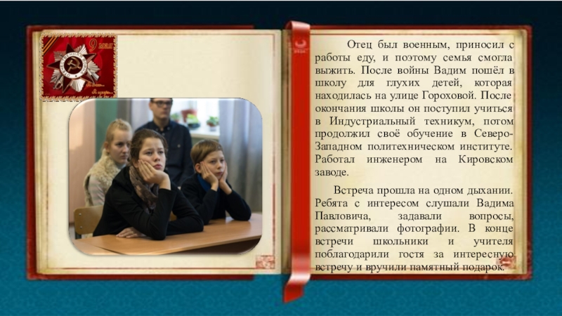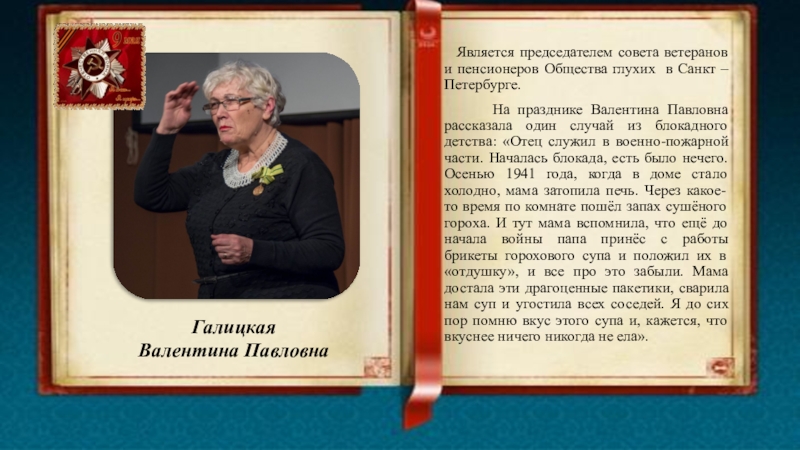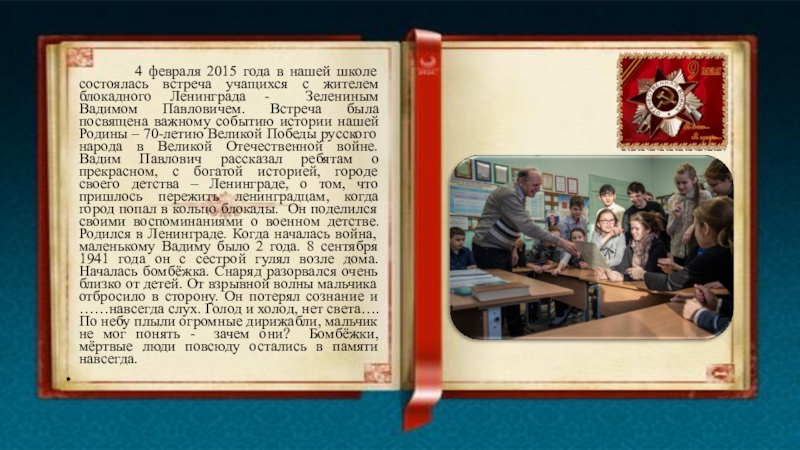 «Очень хорошо помню начало войны, мне было 12 лет. Летом Ленинград подвергался бомбёжкам, в городе появилось много военных. Когда фашисты взяли Ленинград в кольцо, стали продукты выдавать по карточкам. У нас в семье не было никаких запасов. Школа, в которой я училась, была эвакуирована ещё летом, но мои родители меня не отпустили. Решили, что в трудное время, надо держаться вместе. Зиму пережили с трудом. Холодно и голодно. Люди умирали на каждом шагу. Это так страшно! Папа принял решение перебираться на «большую землю». Я никогда не забуду «Дорогу жизни». В несколько полос, один за другим, едут грузовики, в которых сидят дети, женщины, старики. И вот я вижу - на дальней полосе проваливается машина с людьми под лёд и медленно уходит под воду. Никто не может спастись. Жуткая картина! Она стоит у меня перед глазами и сегодня»,- женщина со слезами на глазах больше не могла проронить ни слова.