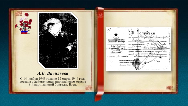 Вот что об этом вспоминала сама Анастасия Ивановна: «Когда в лесах в 1942 году стали формироваться партизанские отряды, мне предложили стать разведчицей – агентурщицей. Я согласилась. Мне дали имя «Чайка». Я должна была собирать сведения о передвижении вражеских войск, информацию о положении на фронте и в самой Германии, о замыслах врагов. Полученные данные я передавала моему двоюродному дяде, который был связным. Он приносил мне задания и уносил информацию в отряд. В конце 1944 года он погиб. Три тяжё- лых года пришлось жить в страхе и риске, бок о бок с немец-кой комендатурой. Фашисты подозревали, что кто-то доносит о них сведения партизанам. Подозревали многих, в том числе и меня. Немцы не раз проводили в нашем доме обыски. Нес- колько раз меня доставляли в комендатуру, но так как я была «чиста», меня отпускали, так ничего и не узнав».