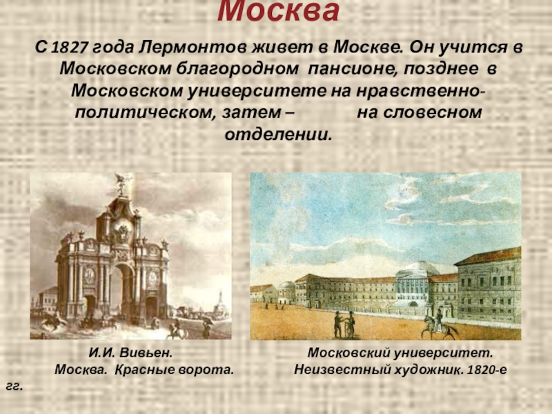 С 1827 года Лермонтов живет в Москве. Он учится в Московском