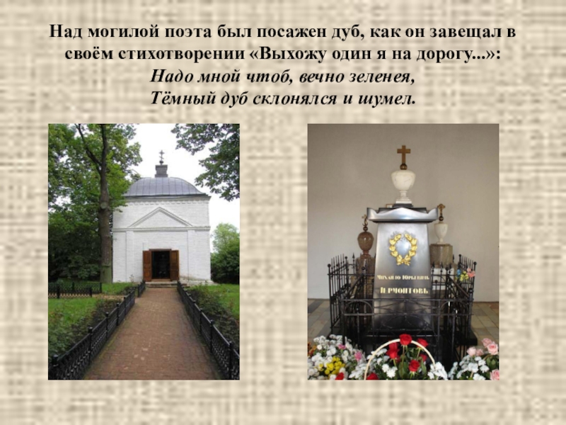 Слайд 20Над могилой поэта был посажен дуб, как он завещал в своём