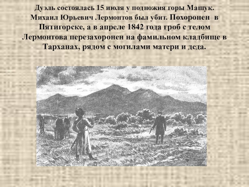 Дуэль состоялась 15 июля у подножия горы Машук.