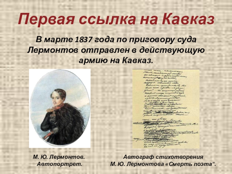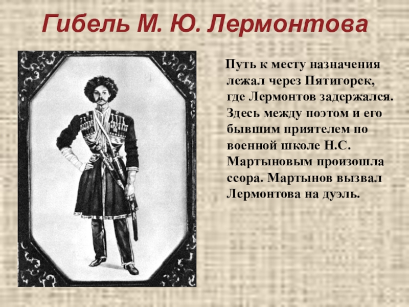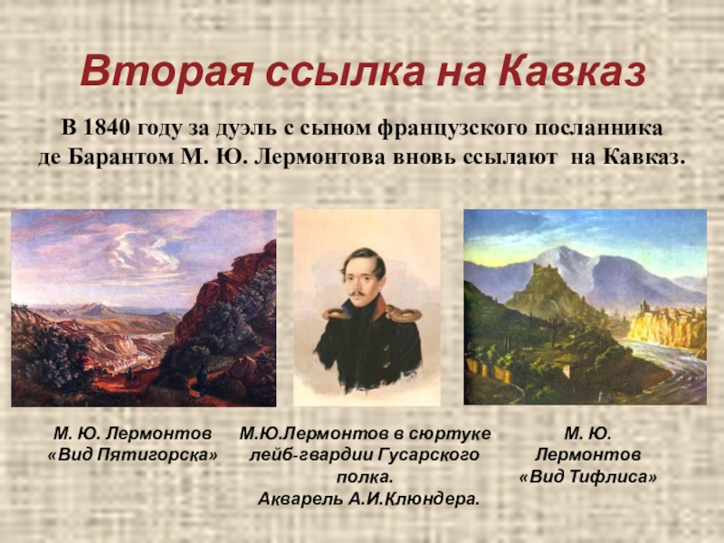 Слайд 265. За какое стихотворение Лермонтов был сослан на Кавказ?