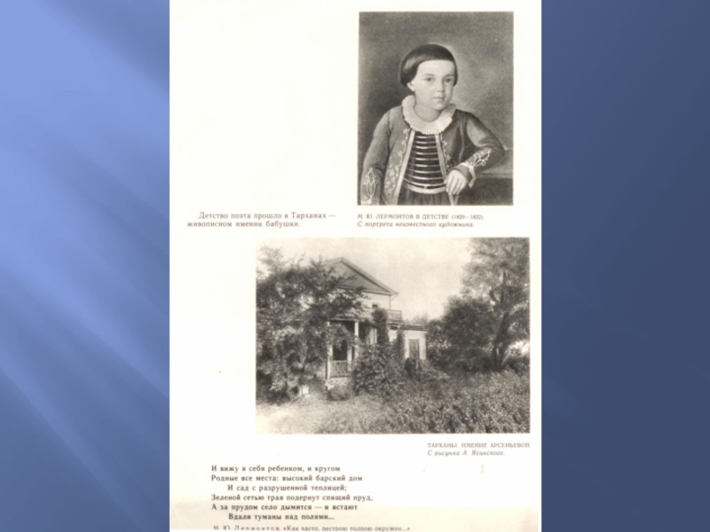 помещицы Е.А. Арсеньевой. Брак между родителями Лермонтова был против воли Арсеньевой, поэтому в семье были постоянные разногласия и ссоры.