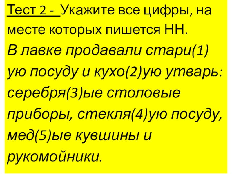 Слайд 23Тест 2 - Укажите все цифры, на месте которых пишется НН.