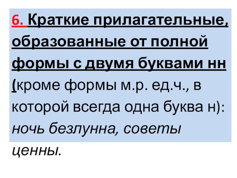 Слайд 196. Краткие прилагательные, образованные от полной формы с двумя буквами нн
