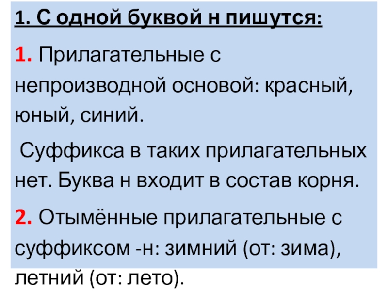 1. Прилагательные с непроизводной основой: красный,