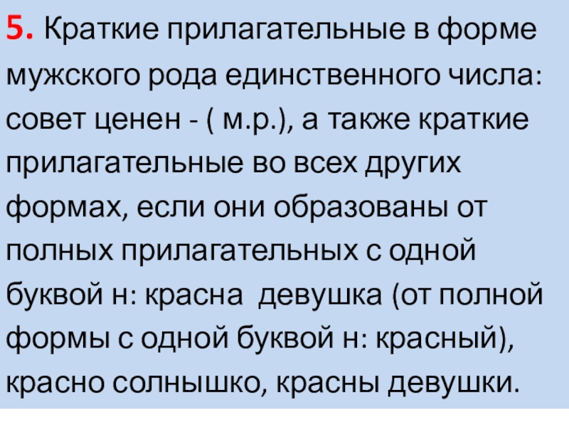 Слайд 95. Краткие прилагательные в форме мужского рода единственного числа: совет ценен