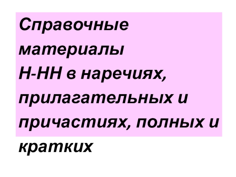 Н-НН в наречиях, прилагательных и причастиях, полных и кратких