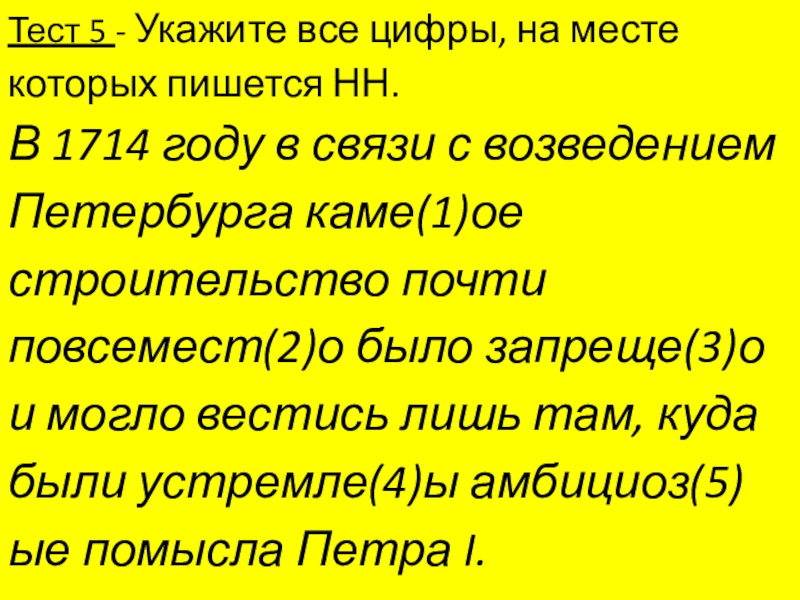 Слайд 26Тест 5 - Укажите все цифры, на месте которых пишется НН.
