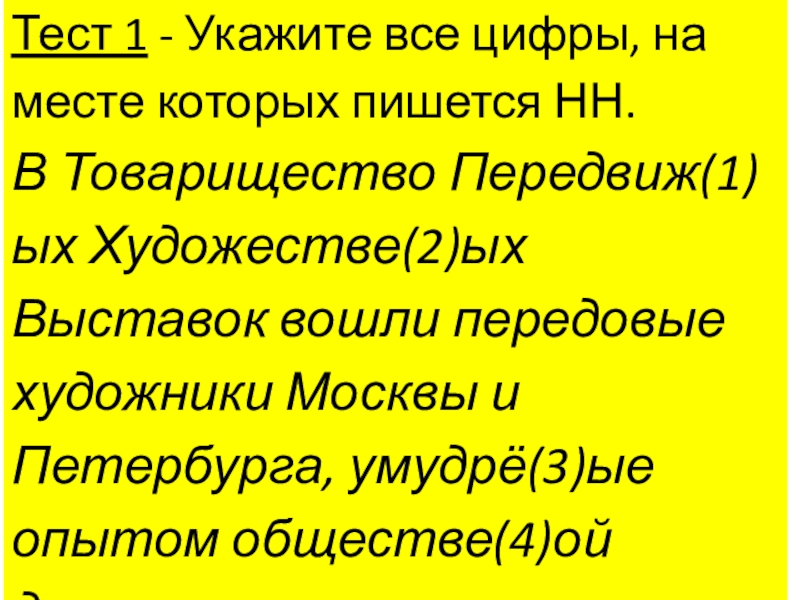 Слайд 22Тест 1 - Укажите все цифры, на месте которых пишется НН.
