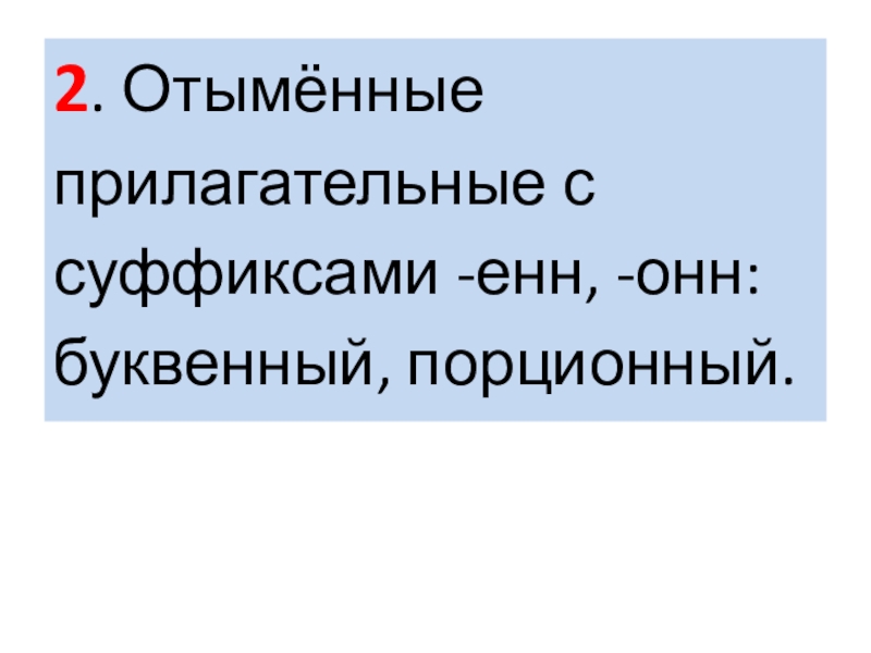 Слайд 122. Отымённые прилагательные с суффиксами -енн, -онн: буквенный, порционный.