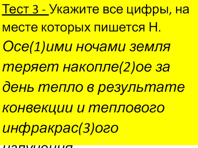 Слайд 24Тест 3 - Укажите все цифры, на месте которых пишется Н.
