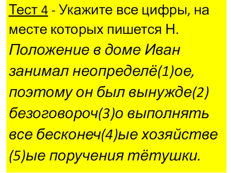 Слайд 25Тест 4 - Укажите все цифры, на месте которых пишется Н.